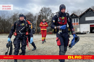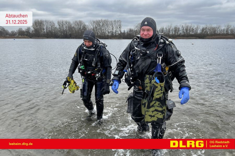 An Silvester steht der letzte Termin im Kalender der Einsatztauchergruppe, das Abtauchen. Vormittags trafen sich Einsatztaucher aus Leeheim und Rüsselsheim für dem letzten Tauchgang des Jahres. Das winterliche Wetter konnte weder die Einsatztauchern noch einige Besucher davon abhalten, sich am Riedsee zu treffen. Das Wasser im See ist mit fünf Grad winterlich, die heißen Getränke wärmen die kalten Finger aber schnell wieder auf. Eine schöne Tradition an Silvester das Jahresende auf eine etwas andere Art zu feiern.
